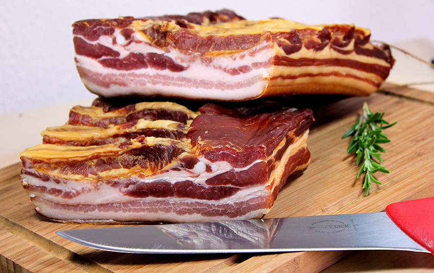 Schweinefleisch, Speck, Speisesalz, Zucker, Gewürze (mit SELLERIE), Dextrose, Aromen, Konservierungsstoff (E250), Buchenholzrauch.