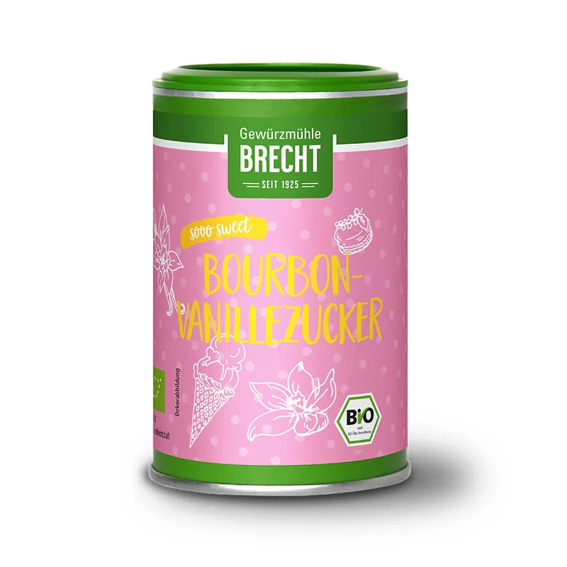 Dosierung: 2 TL Brecht Bourbon-Vanillezucker entsprechen einem Beutel herkömmlichen Vanillezucker