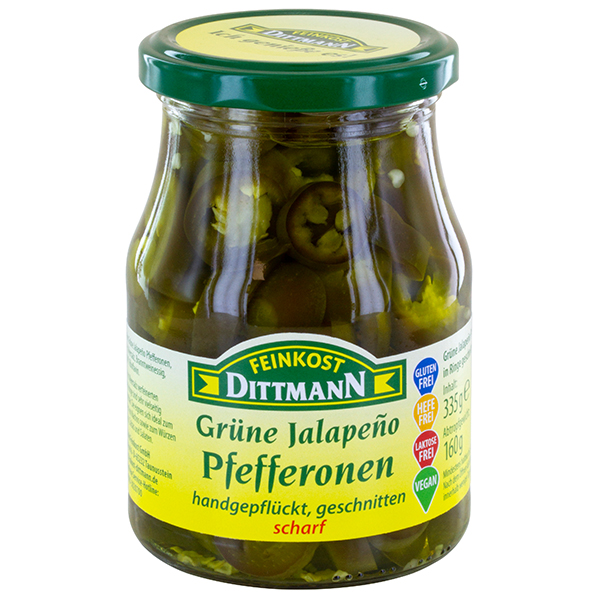 Mit feuriger Schärfe: Diese saftige, dickfleischige Pfefferonensorte zeichnet sich durch ihre feurige Schärfe aus. Sie eignet sich zum Belegen von Nachos sowie zum Würzen von Dips, Salsas und Salaten. Probieren Sie auch unsere roten Jalapeno-Ringe!