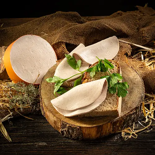 Unsere Geflügel-Fleischwurst kann wie Lyoner ganz einfach in dünne Scheiben aufgeschnitten werden. Perfekt für belegte Brote, Platten, Frühstücksbuffets oder Snacks und Häppchen. Mit frischem Fleisch unserer Hühner und nach unserer hofeigenen Rezeptur hergestellt, entfaltet die Geflügelwurst ihr feines Aroma und zeigt, was eine qualitativ gute und kalorienarme Wurst alles kann.