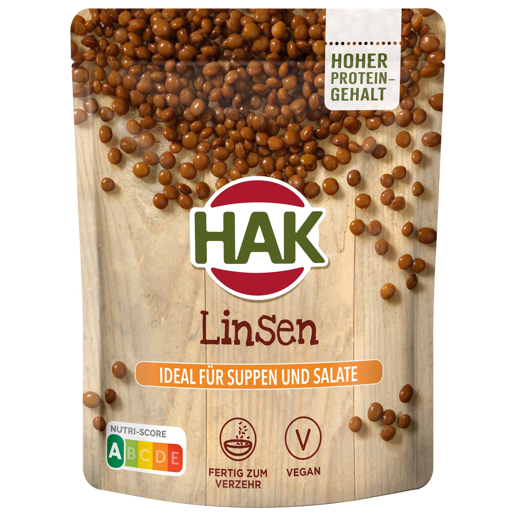 Die Linsen werden im Beutel sorgfältig gar gedämpft. Dank der speziellen Zubereitungsweise bewahren die Linsen ihren vollen Geschmack und einen herzhaften Biss.