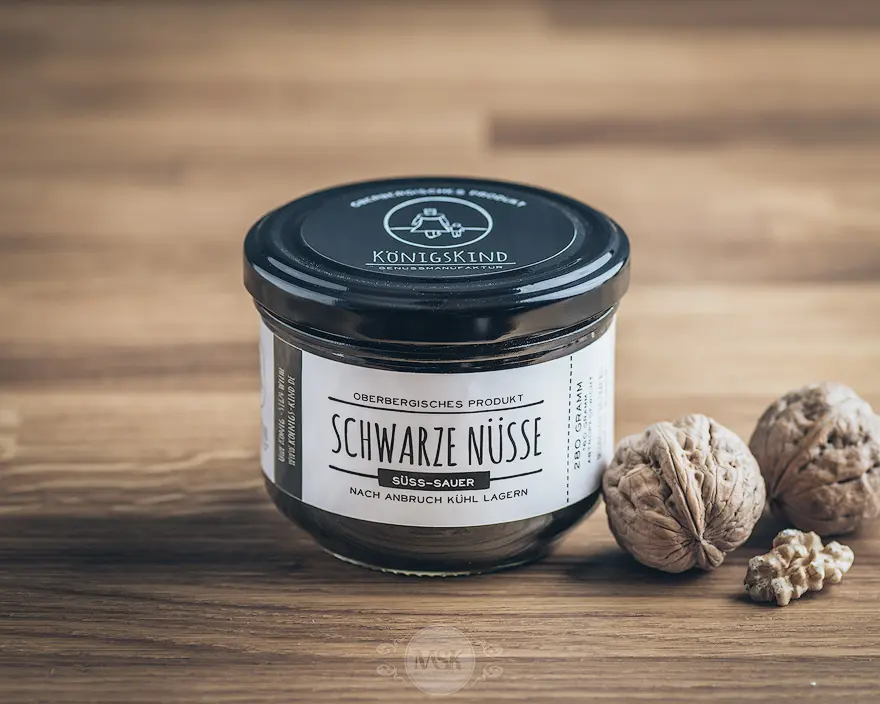 Schwarze Nüsse aus der Genussmanufaktur Königskind werden unreif und grün geerntet, gekocht und gewürzt, bevor sie schließlich für eine Weile eingelegt werden.